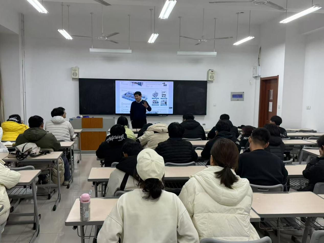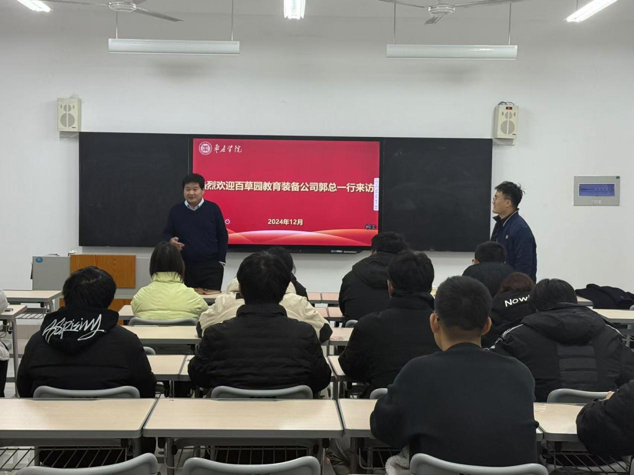 会上,郭方华的讲解内容丰富多样,涵盖了中国经济的发展趋势、枣庄与其他地级市的GDP对比、老员工就业渠道的拓展,以及百草园教育装备公司的发展历程。同时,他还分享了自己成功的创业经历,对未来产教融合、培养员工的实践能力以及创业就业提出了独到见解,为在场的同学们提供了宝贵的职业规划和人生发展建议。