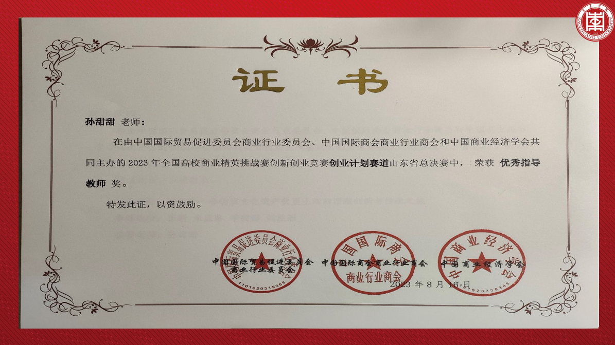 近日,2023年全国高校商业精英挑战赛创新创业竞赛(创业计划赛道)山东省总决赛落下帷幕,创业计划赛道共有来自全省70多所院校的848支队伍入围。由公司代超越、王新两位参赛选手所带领的2个原创项目代表太阳成tyc122cc集团成功入围省级决赛,与全省众多高校同台竞技、力克群雄,并斩获山东省三等奖2项。展现了公司学子扎实的专业能力、卓越的创新精神和出色的团队协作能力。其中公司教师杨金磊、孙甜甜荣获“优秀指导老师”奖。