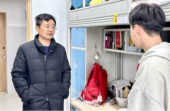 本次检查重点关注夜不归宿、酗酒、宿舍内吸烟、违规校外住宿、违规使用电器等不良行为,认真查找宿舍内可能存在的安全漏洞和事故隐患,同时提醒同学们注意用电安全和宿舍卫生,要求大家保持宿舍整洁、干燥,预防火灾事故的发生。在毕业班宿舍,艾衍辉与同学们亲切交流,了解他们的毕业论文和就业进展情况,他鼓励同学们积极就业,参加招聘会,争取早日找到满意的工作。对于低年级的同学,艾衍辉嘱咐大家尽快调整状态,保持良好的作息规律和锻炼习惯,积极投入到新学期学习中。