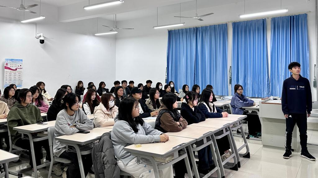 主讲人周公硕是23级市场营销专科4班心理委员,非常关注心理健康工作,积极报名参加团辅活动。掌握“冥想”活动技能之后,他认真准备引导语和音乐,制作PPT 。从“冥想的含义”、“冥想的益处”两方面为同学们讲解冥想的价值,帮助同学们正确认识冥想。在关掉灯光的环境中,他用自己温和有序的语言,伴随舒缓的轻音乐,带领同学们进入一个“时光隧道”,进行生涯幻游。同学们冥想着10年后自己的职业、工作环境、生活状态、荣誉等等。 在20多分钟的冥想活动中,同学们可以摆一个自己舒适的姿态,排除一切烦恼,只想着未来开心、美好的情景。冥想结束时,同学们由衷地放松和愉悦,他们欢快的笑脸验证着活动的成功。