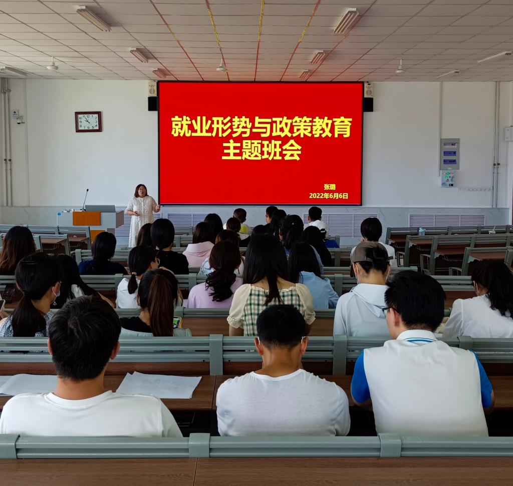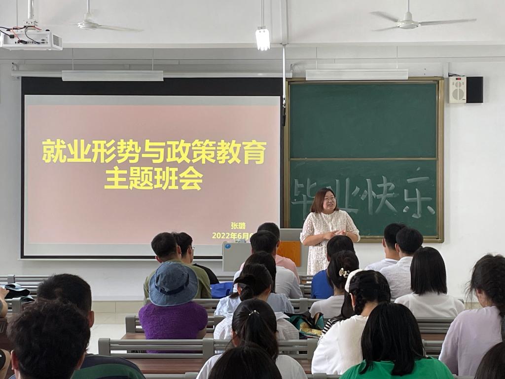 为让毕业生更好地了解就业形势和政策,引导毕业生树立正确的就业观和择业观。6月6日,太阳成tyc122cc集团于增信楼3210、3211、3212召开就业形势与政策教育主题班会。班会由辅导员张璐主持,2018级毕业生、2020级部分员工参加。