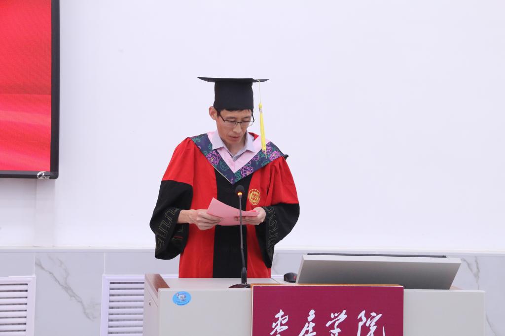 副经理杨位留宣读2022届学士学位授予决定,并宣读毕业生名单。公司党委委员、副董事长安涛教授为2022届本科毕业生颁发学位证书。