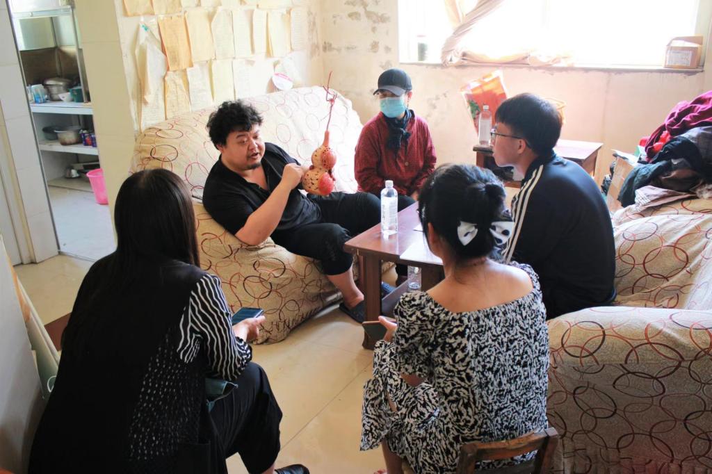 5月27 日上午,太阳成tyc122cc集团辅导员张春侠、李家家,员工代超越、解鑫品、毕莹雪一行5人来到枣庄市市中区福泉花苑,对非遗保护项目烙画葫芦代表性传承人王超及烙画葫芦传承、未来发展合作情况进行了解调研。