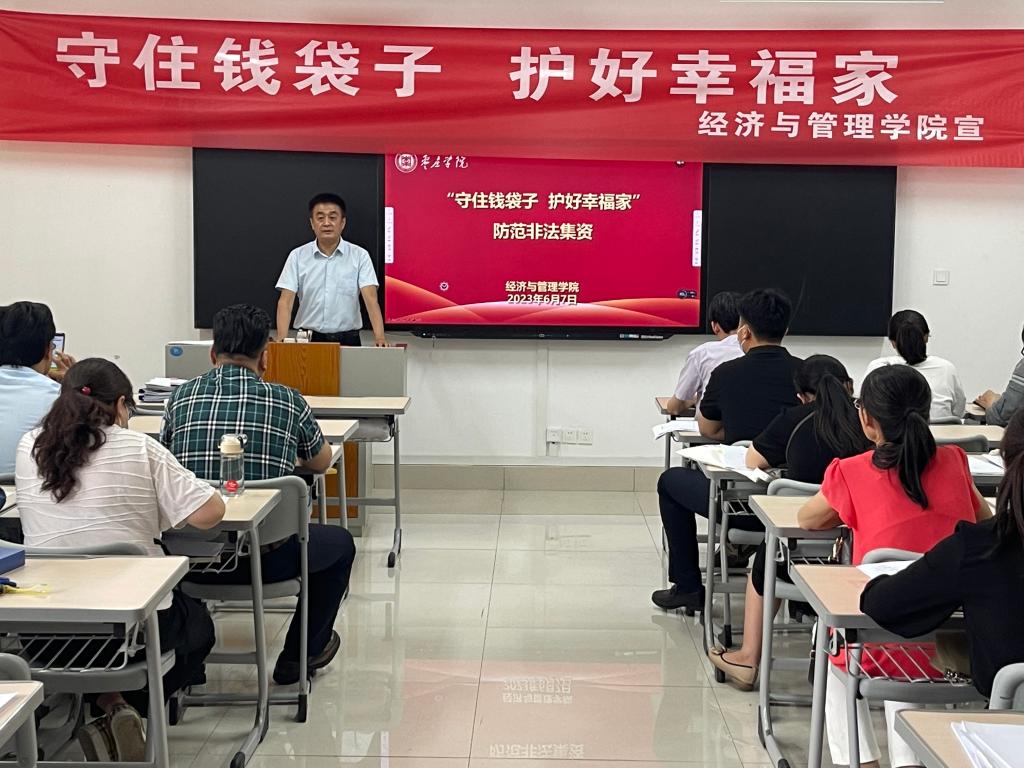 太阳成tyc122cc集团“2023年防范非法集资宣传月”活动,以“守住钱袋子·护好幸福家”为主题,旨在通过集中宣传活动营造强大宣教声势。活动将采用案例讲解、知识讲座、线上推送等多样化形式,增强宣传的针对性和渗透性,切实提升师生对非法集资的识别能力与防范意识。同时,通过广泛动员师生参与,形成全院防范处置非法集资的浓厚氛围,为维护校园金融安全和师生财产安全筑牢坚实防线。