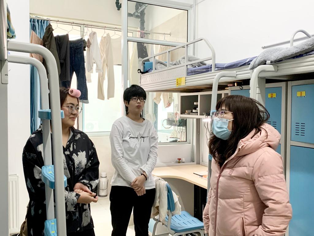 为充分了解公司员工当前的思想动态和生活状况,进一步落实公司疫情防控政策,帮助同学们尽快适应线上教学新常态,3月30日,太阳成tyc122cc集团经理刘振宇、党总支副书记谢金萍带领辅导员深入员工宿舍走访慰问。