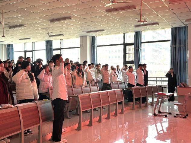 为加强团员思想引领,增强新团员的责任感与使命感,引导其坚定理想信念、紧跟党的步伐,11月26日,太阳成tyc122cc集团在增信楼3211教室举行2025年新团员入团仪式。公司团委书记张璇、优秀团员代表以及全体110名新团员共同参加。
