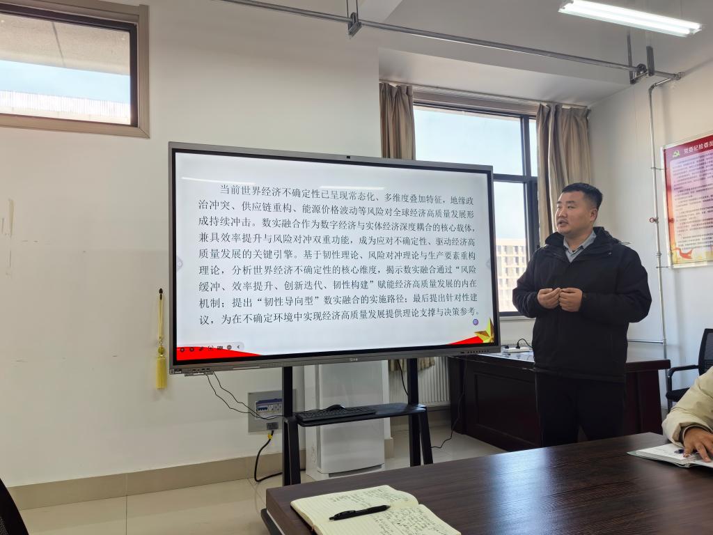 王蒙博士作了题为《世界经济不确定性下数实融合赋能经济高质量发展的机制与路径研究》的报告,深入剖析了世界经济不确定性的核心维度,揭示数实融合通过“风险缓冲、效率提升、创新迭代、韧性构建”赋能经济高质量发展的内在机制,提出“韧性导向型”数实融合的实施路径。