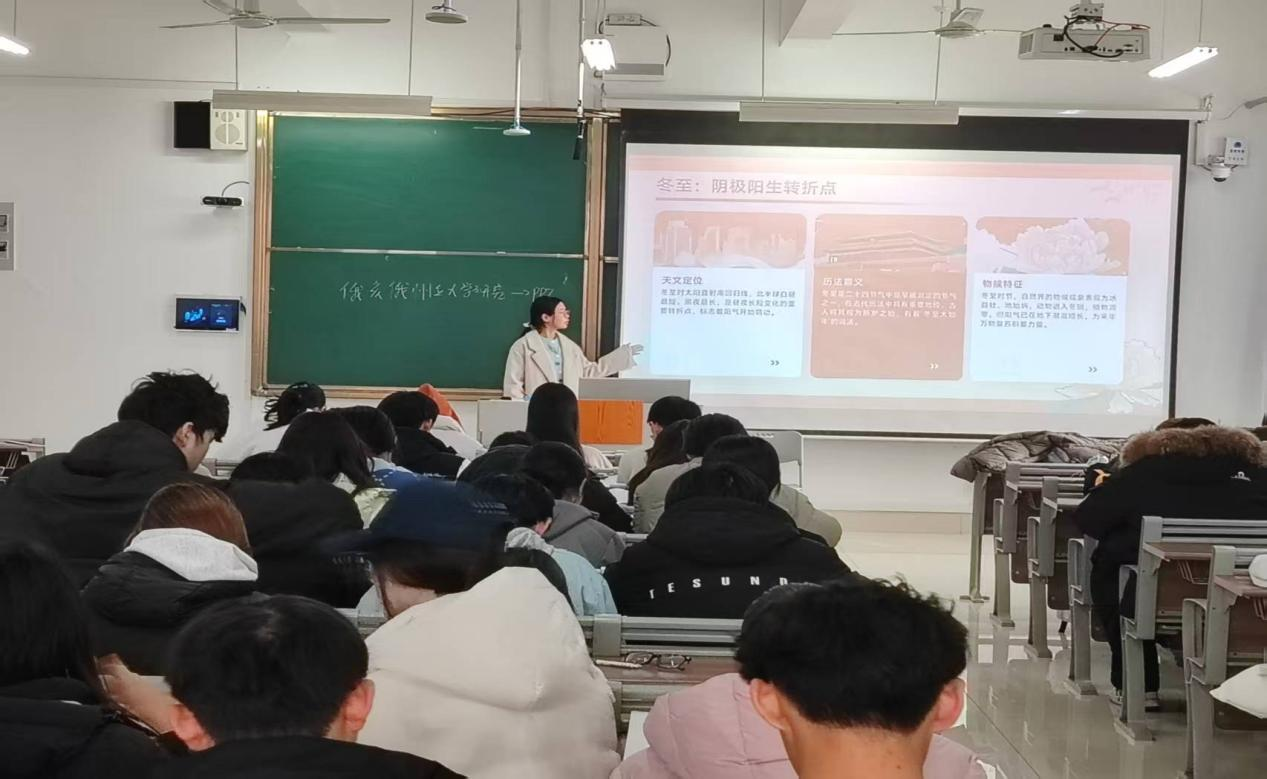 活动中,各团支部通过PPT展示,系统介绍了冬至的文化概念、节气“三候”及各地传统习俗等内容,带领团员深入理解冬至的历史渊源与文化意义。团员积极参与讨论,结合家乡特色分享冬至习俗,在交流互动中感悟中华传统文化的深厚底蕴。