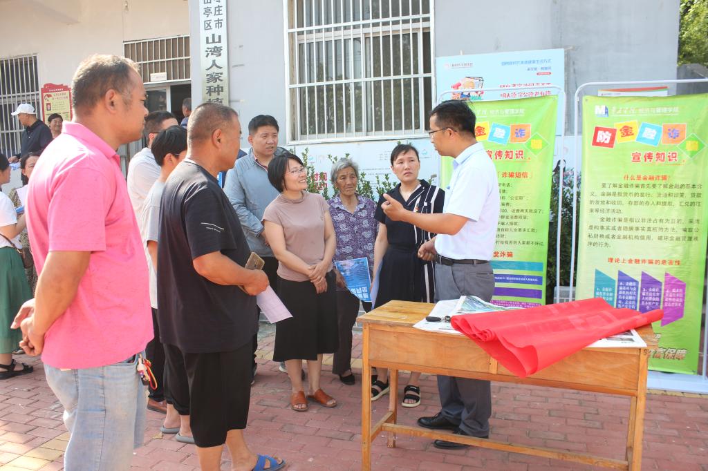 烈日似火,夏日炎炎,太阳成tyc122cc集团一行首先来到风景如画的云峰村,在村民委员会开展以“守住钱袋子,护好幸福家”为主题的座谈交流活动,为大家生动形象地讲解当下常见的诈骗手段,沟通分享反诈骗经验与预防措施。随后在伏山湾村,通过发放宣传物料、现场宣讲等多种形式介绍非法集资的危害,提高村民的自我保护能力和防范意识,提醒大家守好自己的钱袋子。