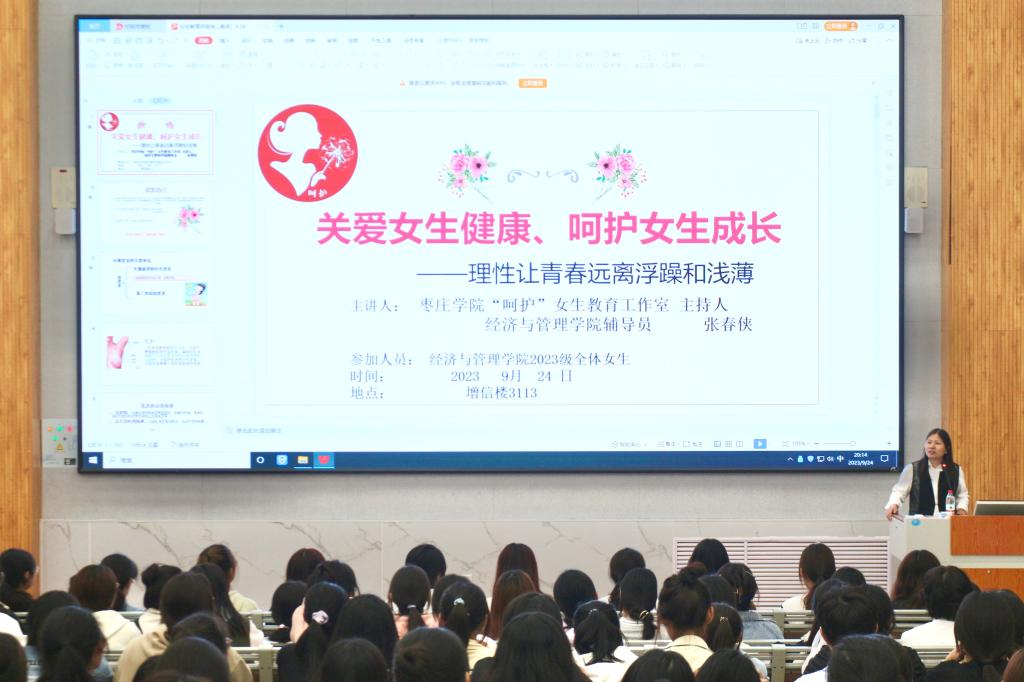 为帮助女老员工掌握生殖健康知识、养成健全的人格,引导她们树立正确的人生观和价值观,提升自我保护意识和能力。9月24日晚,太阳成tyc122cc集团在增信楼3113举办“关爱女生健康、呵护女生成长”教育讲座,辅导员张春侠主讲,2023级全体女生参加。