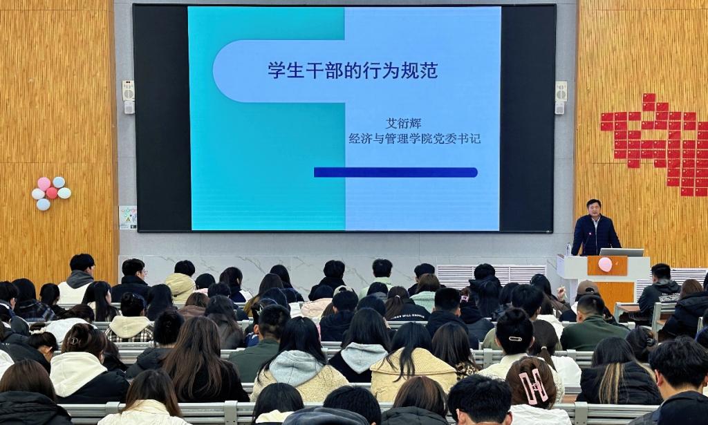 艾衍辉以“员工干部的素质与能力培养”为主题,从政治思想理念、科学文化素养等多个方面,对员工干部的行为提出意见与建议。希望员工干部一要加强号召力、凝聚力、战斗力,二要思想政治好、学习成绩好、工作能力好、模范带头好、服务同学好。希望公司员工干部充分发挥各级员工干部团队的作用,明确工作任务,强化工作职责,进一步加强精细化管理,努力提升自己的管理能力和服务水平。