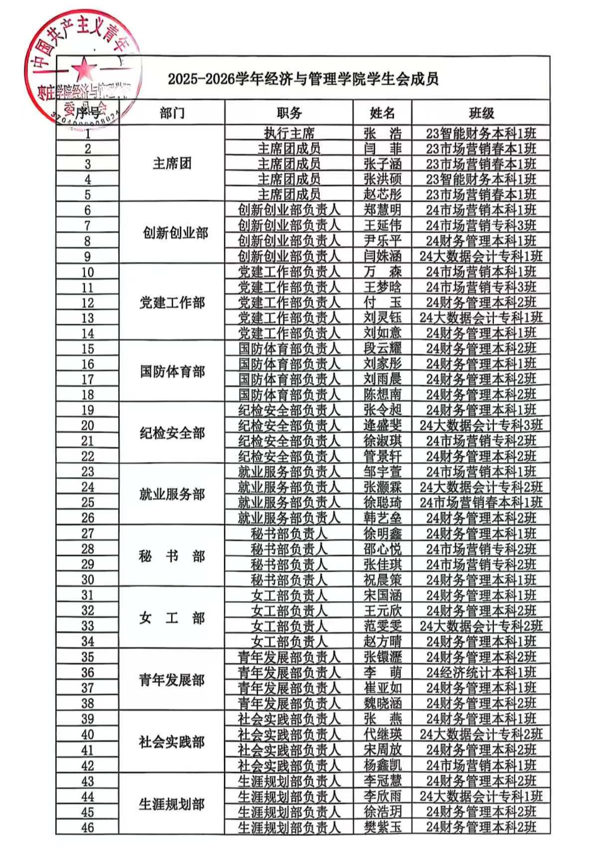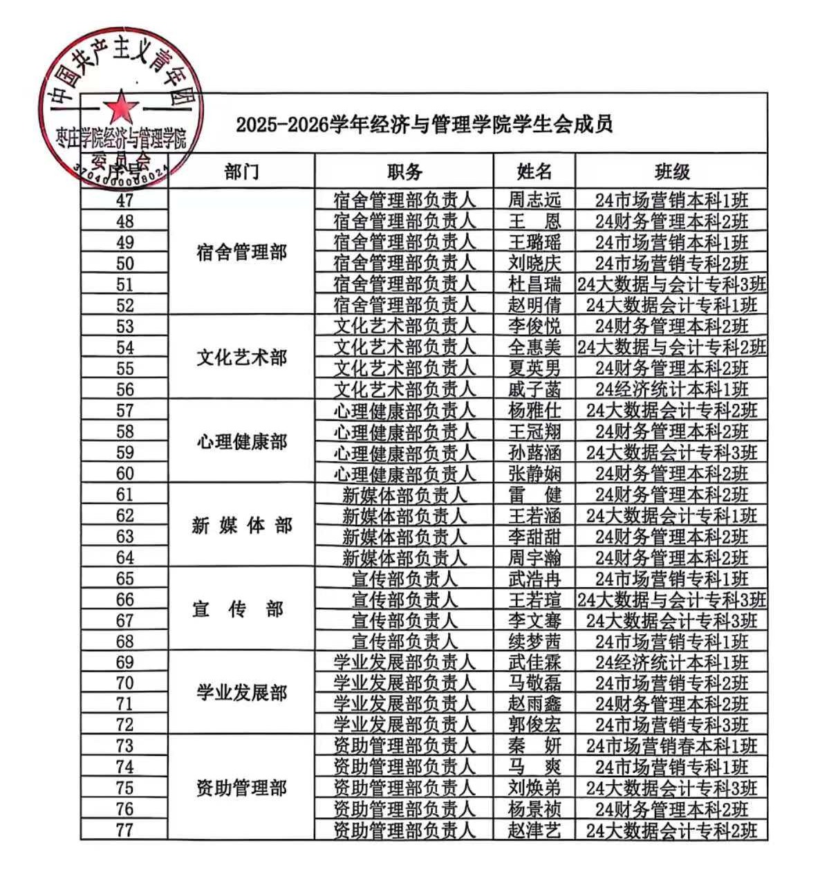 2025-2026学年太阳成tyc122cc集团员工会、自律会成员名单